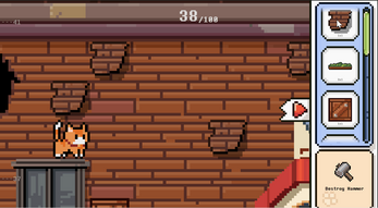 Adorable! Love the art, animation, and music! I only wish there were some hotkeys so I could more easily build things quickly, as well as a gameplay reason to use anything besides the 1x1 blocks the whole way up. A great entry!